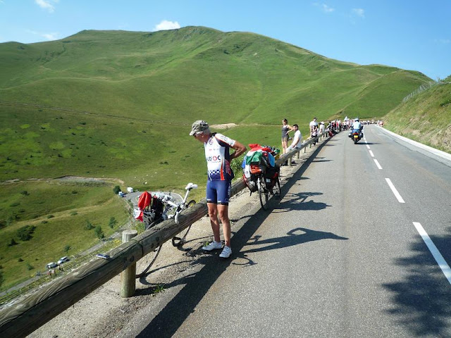 I finished the day with a mountain top finish, as I cycled up an hour on the ascent of the Col de Peyresourde because in the following morning I wanted to see the Tour de France racers by the top of this col. After building up my tent in Garin I could see the last 2 kms of the stage on the TV of my neighbour british pair.