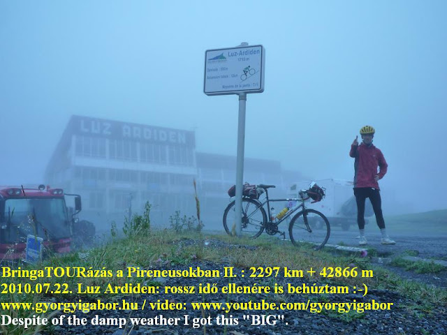 I entered the year 2010 after 17 years of bicycling abroad (and in Hungary) and after the 132 occassion of cycling above 2000m. Collecting the roads above 2000m by bicycling that I lifted for a more serious level in 2004 arrived at the last phase. In spring basically I was thinking about an alpine bicycletour, when – at the start of the year 2010 - an acquaintance of mine wrote me an e-mail wether I’m interested in joining them to their Pyreneen bicycletour. Not everything was clear so – by unlucky situation - I had to count with the thing that there wouldn’t be a place for me in the car, but without the unlucky situatuion, so by normal occassion it was an attractive / tempting idea: