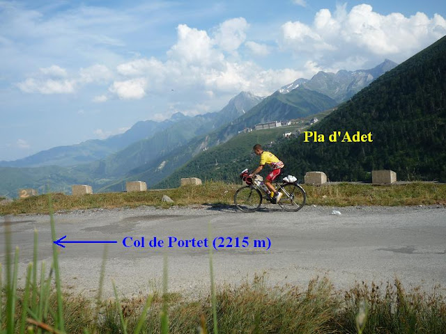 20th July, 2010, - 8th day: = Garin (1120 m) – Col de Peyresourde (1569 m) – Genos – Col d’Azet (1580 m) – St Lary Soulan – Col de Portet felé, aszfaltos után 700m-rel (1750 m) – Pla d’Adet (1680 m) – St Lary – Arreau (710 m) – Col d’Aspin (1489 m) – St Marie Campan, kemping (847 m) = 115,65 km + 3062 m heightdiff.