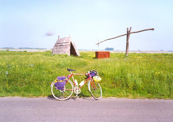 Sopronon végigtekerve megállapítottam, hogy az utak ott sem jobbak, mint Pesten. Kiérve a "leghűségesebb városból" jó szélben haladtam Kópháza felé. Derűs hangulatomat csak az törte meg, hogy elfelejtettem felírni a Hotel telefonszámát, így minden segítség nélkül indultam Ausztriába. Emelkedőkkel alig találkoztam. Nagycenken láttam a Széchenyi kastélyt, Fertődön pedig az Eszterházy-kastélyt örökítettem meg. Fertődtől a határig már jó minőségű bicikliúton, hátszélben folytattam az utam 30-31km/ó-s sebességgel. A már ismerős Fertőd-Pamhagen-i határállomáson a bringásokat külön sáv várta. Miután útlevelembe megkaptam a pecsétet, az árnyékban hozzáláttam első lekváros szendvicsemhez, német túristák néztek rám a buszból. Ausztriában már pulcsi nélkül folytattam utam. Folyadékként viszont már a tegnap vett Plusszal ízesített vizet ittam. Pamhagentől Apetlonig szántóföldek közt tekertem; a segítő hátszélben 32-33km/ó-s tempóval robogtam, a faluhoz közeledve egy traktort és egy bringást próbáltam befogni, sikerrel. Útközben a kormánytáskámon fekvő térképet nézve azon gondolkoztam, hogy merre folytassam az utam. Apetlontól a szomszédos (3km) - tegnapról már ismert - falu Illmitz felé nem a bringaúttal kivételesen el nem látott közúton, hanem egy 10km-es kerülőúton tekertem tavak mellett, majd szőlősorok között. 1/2 10-kor Apetlont elhagyva túlléptem az 50km-t. Utam náddal, fűvel körülvett állatok által sűrűn lakott szikes tó mellett vezetett közúton, majd aszfaltozott mezőgazdasági úton, a kijelölt bringaúton. Útközben gyakran találkoztam - főleg középkorú - bringásokkal. Illmitzbe szőlősorok között érkeztem. Mivel tegnap nem sikerült, megpróbáltam megkeresni azokat a szép, nádtetős fahér parasztházakat amelyeket a bringáskönyvben láttam. Nem jártam sikerrel.