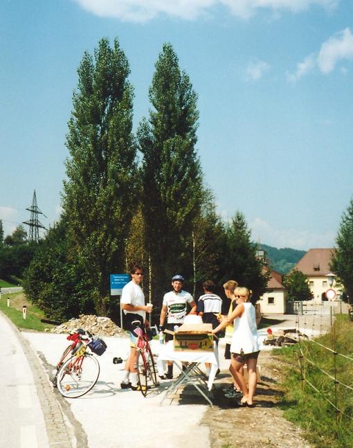 Az egyik legkellemesebb emlékem az egyik, kilométeres emelkedőn ért. Mezőn tapostuk a pedált, a balkanyarnál az út mentén nyolc-tíz kedves szurkoló állt és tapsolva nézte az egyre jobban szétszakadó kígyót. Talán mert még nem volt ilyenben részem, a kedvükért kissé megnyomtam a tempót és elhagytam pár fiút. Látva, hogy túrabringámmal is milyen jól tartom magam, németül buzdítottak engem is: "Bleib oben!" - azaz "Tartsd magad!" 40 km környékén éppen egy emelkedőn lassan elhúztam pár srác mellett, mikor az egyik megszólított, majd angolul beszélgetni kezdtünk. Neki is feltűnt a csomagom; elmondtam, hogy inkább túrázgatni szeretek csomaggal (oda, Ausztriába Magyarországról is 15 kg-os teherrel érkeztem), mint versenyezni. Szóba jöttek még a magyar teljesítménytúrák, majd elváltunk.