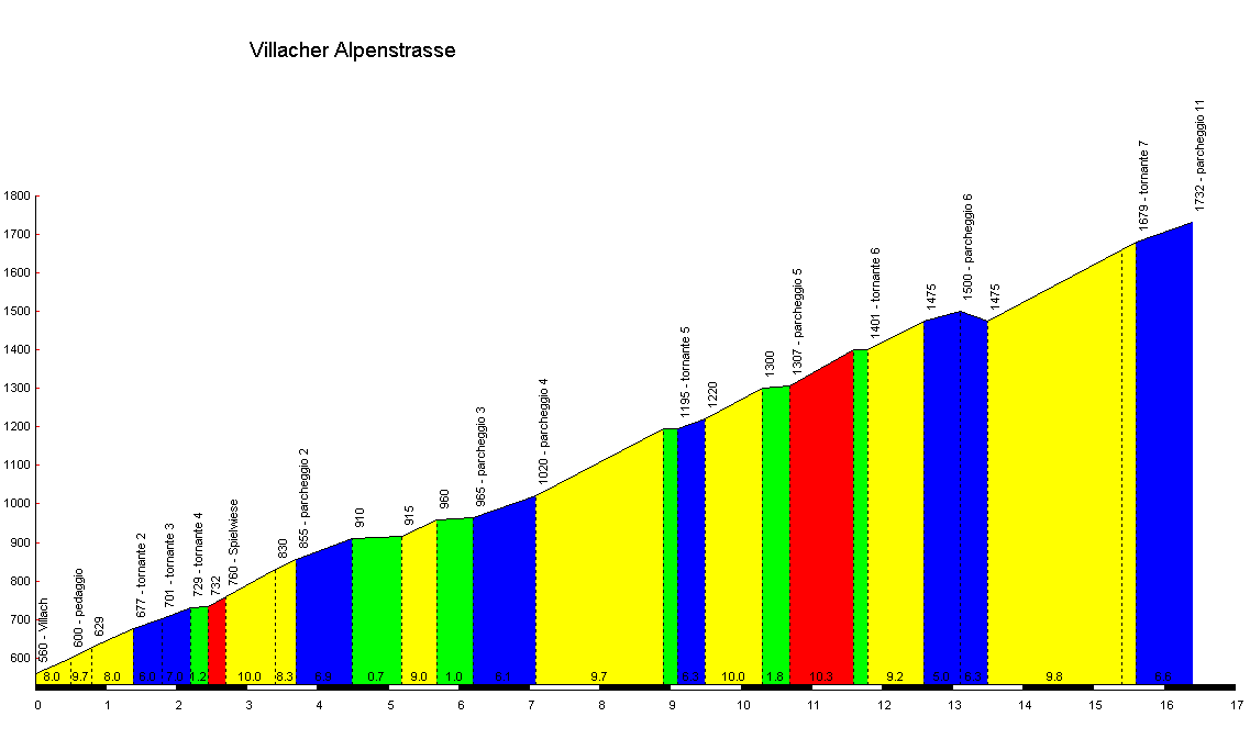 vezetett a vasút, azontúl pedig magánházak, strandok, kempingek; nem igazán láttam szabad tópartot. Bodensdorftól, bár - pénz híján - ezúttal sem szándékoztam a Gerlitzenre felhajtani, kilátás reményében a Gerlitzenre induló panorámaútra fordultam. Éppen kiértem az utolsó házak közül, hamarosan a fizetőkapuval és a sorompóval találtam magam szemben. Egy árnyas fa alatt a fűbe ültem és falatozás közben az alattam kéklő Ossiacher See panorámájában gyönyörködtem. A ttóparton továbbkerekezve kellemes napsütésben keltem át az autópálya alatt, majd 17:10-kor értem "haza", Villachba. 70 km-t hagytam a hátam mögött, de teljesen friss voltam és miután időm is bőven volt még, nekivágtam a tervezett panorámaútnak, erőpróbának, a Dobratschnak. Az emelkedő az 500 m magas Villachban kezdődött és 16,5km-rel később 1732m magasan végződött. Ismertem az utat, két éve anyuékkal kocsival már jártunk rajta. Tudtam, hogy egy-két kilométerenként panorámás parkolók vannak, ahol a hajtűkanyarokkal egyetemben táblák jelzik a magasságot. Úgy éreztem, a táblák sokat segítenek majd a tájékozódásban, tartják bennem az erőt, tisztában lehetek a helyzetemmel.