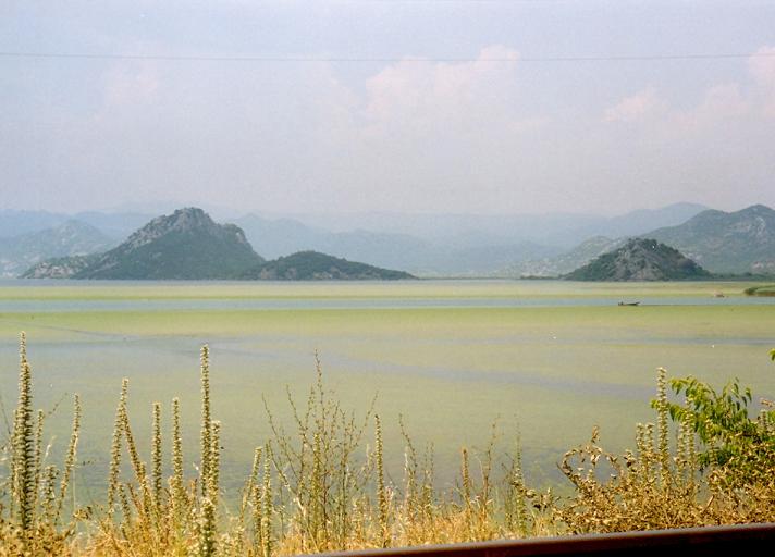 Pár kilométer múlva egy kisebb hegy oldalában végre leértem a síkságra. Vasúti sín mellett pedáloztam. Pár kilométer múlva Virpazar házait mellett elhajtva értem a tavon átvezető útra. A térkép alapján eddig nem is gondoltam, hogy miként vezették át, igaz a tó mélységére sem gondoltam. A kocsiút mellett a vasutat is egy keskeny földsávon vezették át a tavon; jobbra-balra nézve is vízfelületet láthattam. Bezzeg kulacsaimból már elfogyott a víz, igencsak megszomjaztam, ám boltot sehol sem találtam. A tó csendes, növényekben gazdag, zavartalan természeti környezet volt. A partok vízi növényekben és nádban bővelkedtek. Érdekes volt, hogy a tó színe is zöld volt, sőt sok helyen (a víz alatt) látszott benne a zöld növényzet, vagy nyálka. Amikor csónak haladt el a vízen, érdekes volt, ahogy a csónaktest áttörte és kitisztította a vízfelszínt és csíkot hagyott maga után. Míg a víz színe világoszöld, mögötte a távolban a hegyek sötétzöldek és szürkék voltak, ráadásul az ég is befelhősödött egy picit.