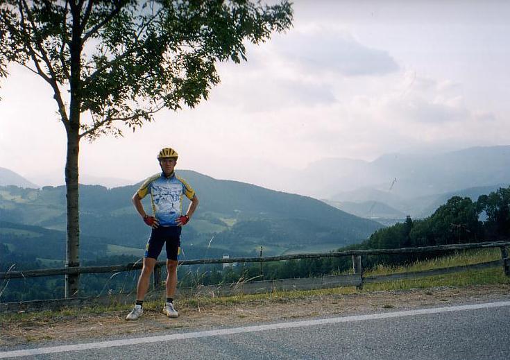 Tamással együtt, egymás mellett, nagyon jó, friss tempóban kezdtük meg az emelkedőt; mondtam is neki:"-Most még hagyján a dolog, de majd 3-4 km múlva." Utoljára 1995-ben kerekeztem arra, jóformán csak annyira emlékeztem, hogy erdőben vezet az út, Sankt Coronából szép kilátás nyílik a Schneebergre és az út nem brutális, de imitt-amott akadnak meredek részei. Jól emlékeztem.