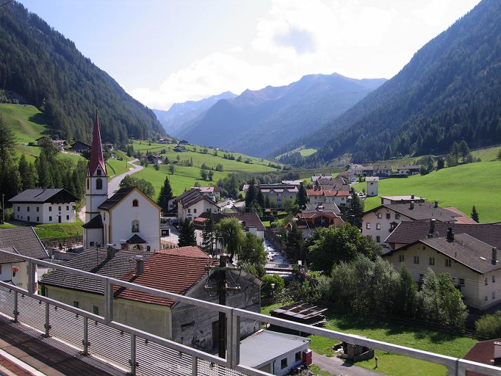 Otthonhagyott papírjaim miatt csak emlékezetből tudtam, hogy szállásom címe: Sennstrasse 3. A térkép alapján 2 km alatt már az utcába értem, ám fel kellett hívnom a szállást, hogy megtalálhassam a 3-as számot. A szállás éppen építkezés alatt volt, ám ez csak kinézetben okozott kellemetlen meglepetést, viszont ha végiggondoltam, éjszakámat, kényelmemet nem befolyásolta. Napközben tekertem, a szálláson csak a munkák után este 8-tól reggel 7-8-ig voltam. Mivel a szobámat még elő kellett készíteni, a regisztráció kitöltése után a recepció mögött letettem a nagy csomagokat, majd a délutáni túrára valókat hátizsákba téve fél 12 tájban visszatértem a pályaudvarra. Útközben már meg is oldottam a bringáról lelopott első lámpám problematikáját; vettem újat; valamint térképet is. A 12:20-as vonattal 13 órára értem fel a Brenner hágóra. 2005-ben bringával hajtottam fel, jártam már az autópályán is; most érdekes volt vonatból gyönyörködni a völgyben, erdőkben, hegyekben és a viaduktokban.