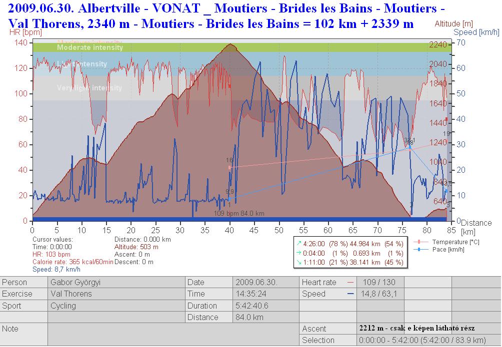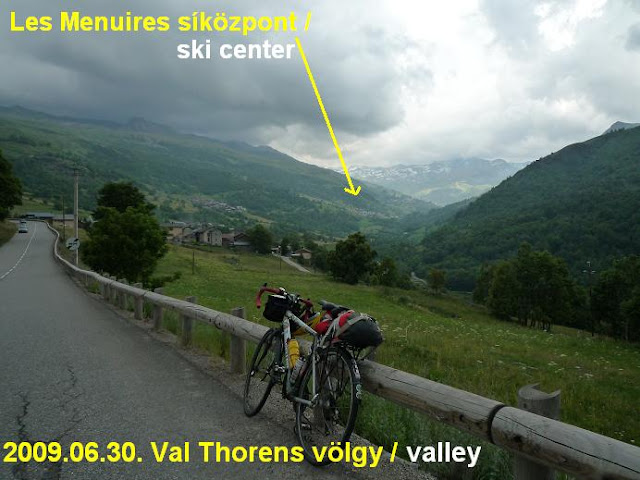 2009. június 30, kedd – 10. nap: Albertville – VONAT – Moutiers – Brides les Bains – Moutiers – Val Thorens (2340 m) – Moutiers – Brides les Bains = 102,23 km + 2339 m szintemelkedés