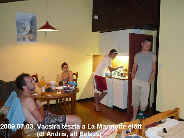 Hat és fél óra alvás után 1/2 7-kor zajok ébresztettek. Nem túl jó adalék a Marmottéhoz. Kimostam pár mezt (mert később 2 utazós nap során nem lehetne, itt pedig ha egy helyben sátrazom 3 éjszakát, akkor kiváló alkalom), bevásároltam az ismerős Casinó áruházban (sok bringás is így tett), majd végül ahogy sms-en egyeztettük, 1 12-re a központba gurultam a találkozóra.