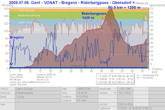 2009. július 6, hétfő – 16. nap: Genf – VONAT – Bregenz, onnan bringa – Schwarzach - Hittisau – Riderbergpass (1420 m) – Obersdorf = 80,52 km + 1255 m szint