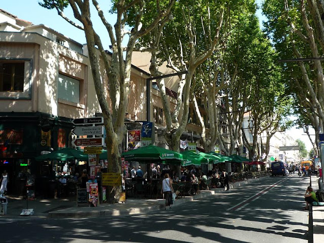 A pályaudvarral szemben induló fő sétálóutcán nagy platánfák adtak árnyékot, az út mentén sorra felkapott üzletek követték egymást, majd picit beljebb következtek a vendéglők napernyős asztalai, kiülői. Az utcák oszlopa, itt-ott falak is tele voltak odaragasztott, vagy rögzített plakátokkal, melyek az 1 hónap hosszú fesztivál valamilyen eseményeire hívták fel a figyelmet.
