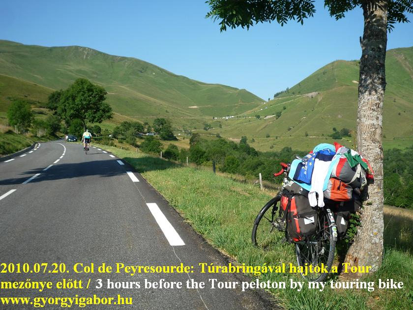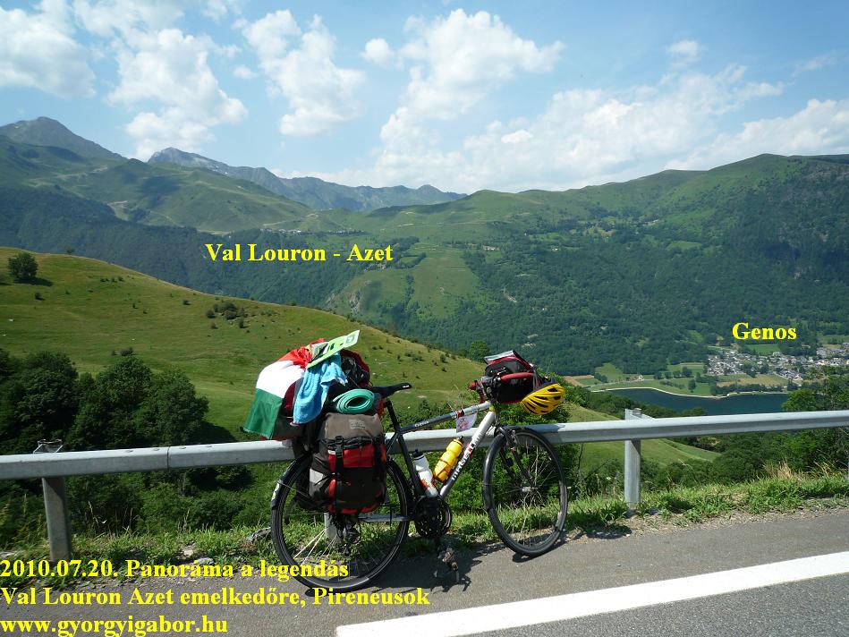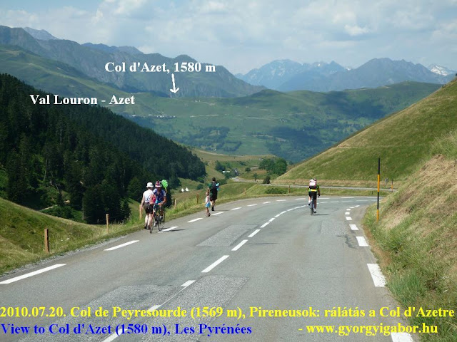 2010. Bringatúra a Pireneusokban II. : (21 nap): 2368 km + 42996 m szint Meglett az összes "Piri" 2000m-es aszfaltos emelkedő - 8. nap: Pireneusok - 4. napja: Col de Peyresourde (Tour de France) , Col d'Azet (1580 m), Pla d'Adet, Col d'Aspin