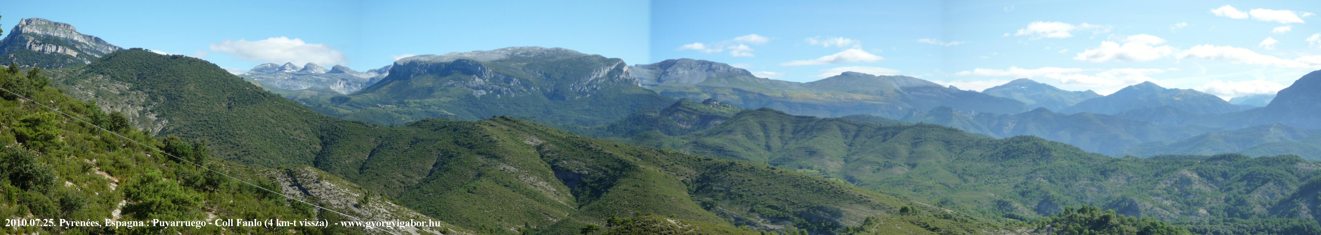 Keletről előbb a teljesen függőleges sziklafallal végződő, jellegzetes alakú, 2291 m magas Pena Montanesa, majd pár hasonló hegy után Észak felé Ordesa kanyon jellegű ferde oldalú, enyhén virágos hegyoldal, végül az utolsó szépség a francia Cirque Gavernie óriási hegyek koszorújának spanyol oldala három púpu hegygerinccel, hófoltokkal. Nem tudtam betelni a látvánnyal, nem tudtam jelzőkkel illetni a kilátást, annyira lenyűgözött. A Pireneusokban eddig talán a Tourmalet hágó tetszett leginkább és tetszett volna a Cirque Troumouse ha a két alkalomból legalább egyiknél igazán szép időben lehetett volna részem, ám úgy éreztem: ez mindkettőn túltesz. Noha ez csak egy kis hágónak,