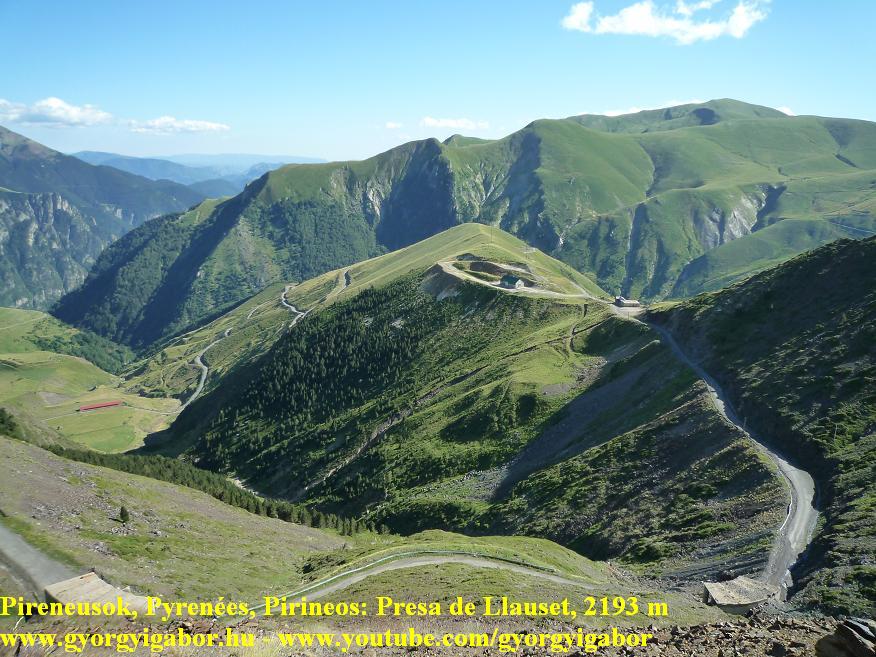 Ami a tájat illeti, kezdetben pár kilométer hosszan még a tomboló szeles fővölgyre nyílt fentről szép kilátás (felhő is alig volt az égen, érthetetlen a tomboló szél), majd ezután már befelé füves-sziklás barátságos hegyekre és a tekergő útra, végül pedig sziklásabb, itt-ott vízeséses hegyoldalra, völgyre, rajta a tekergő kocsiúttal és alagutakkal. Az út végén csodásan látszott a két sziklás hegy közé épített duzzasztógát. Gyönyörű táj volt! Szomorú, hogy nem újítják fel az utat: hasonló tájon bármelyik alpesi országban komoly turizmus lenne, hiszen a magas emelkedőket, hágóutakat tekintve a spanyol Pireneusokban szerintem ez a legszebb.