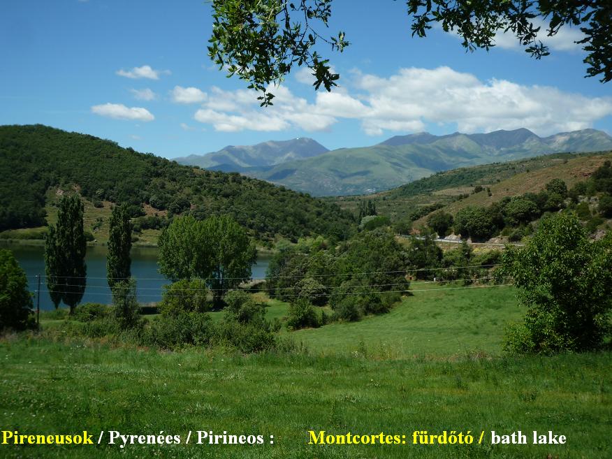 A hágó (kb. 1060 méteren) tulajdonképpen egy hegyi fürdőtóval díszített fennsík volt, amely mentén – a tábla szerint – tilos a vadkempingezés. A síkon pedálozva enyhe irigységgel néztem a vízben lubickoló gyerekeket. Érdemes volt kis kitérőt tennem a tó keleti partjára, mert onnan még szebb arcát mutatja a környék: a tó mögött az előző este felkeresett Boi Taüll hegyei szépen mutatnak. A lejtő – hát még a lejtőről látott mély, kopárabb, sziklásabb, bozótosabb és száraz völgy – egyre inkább andorrai jellegzetességet mutatott; az Andorrába vezető völgy tájához hasonlított. A lejtő pár km-t egy kis köztes füves „lépcsőn” haladt át, mely szélén bájos apró falucska, Paramea vigyázta a környéket. Háborítatlan csodás vidék.