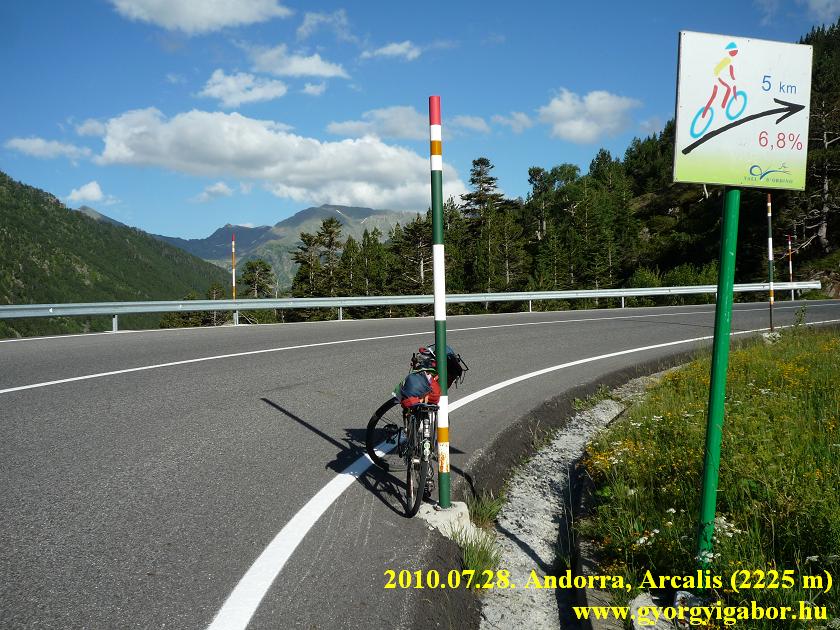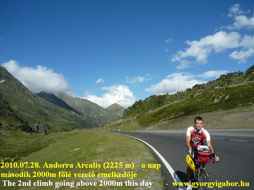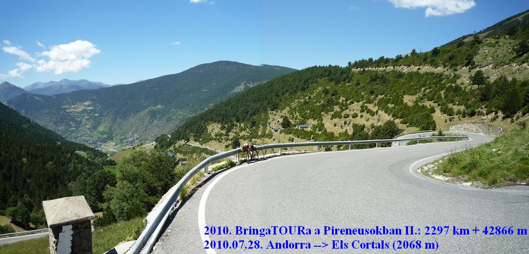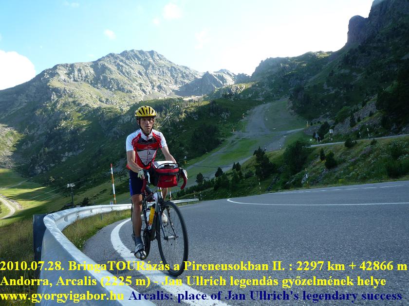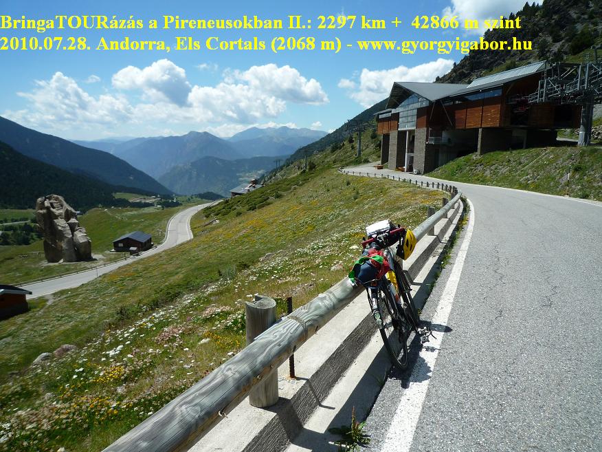 2010. Bringatúra a Pireneusokban II. : (21 nap): 2368 km + 42996 m szint Meglett az összes "Piri" 2000m-es aszfaltos emelkedő - 16. nap: Pireneusok - 12. napja: Andorra : Els Cortals (2068 m), Arcalis (2225 m), Grau Roig (kb. 2080 m)