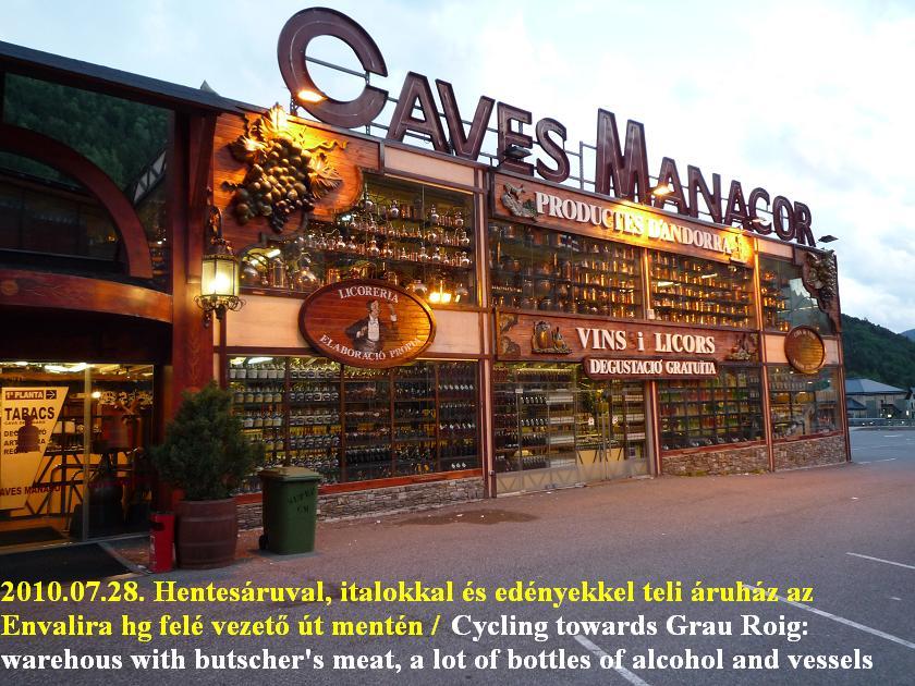 Az alsó néhány km Encampig reggelről is ismert volt: szinte végig forgalmas, élettel teli falvakon át. Encampot követően már ritkábban voltak települések. Canilló előtt vagy után (?) érdekes áruházépületre leltem: avagy inkább nagy üzletek együttese: alul 2 üzlet: általam még nem látott, hatalmas választékú hentesüzlet és mellette szintén elképesztő választékú italüzlet: leginkább sok bort és likőrféléket láttam: szerintem nincs Magyarországon ilyen választékú italüzlet. Az emeleten nagy edény- és fazéküzletet, illetve ajándékboltot láttam.