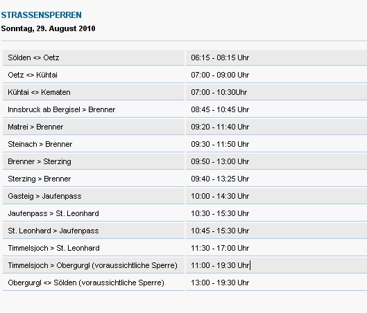 Ami az Ötzi előtti túrákat illeti, picit elbizonytalanodtam: nehogy visszaüssön, ha túl komoly túrát teszek csütörtökön – mindössze 2 nappal az Ötztaler előtt ! Ugyanis csütörtökre két 2000-essel (Idalpe és Kaunertal) legalább 3800m szintemelkedésű túra volt a terv. Az Ötzi honlapja csodás időt jelzett előre a marathonra.